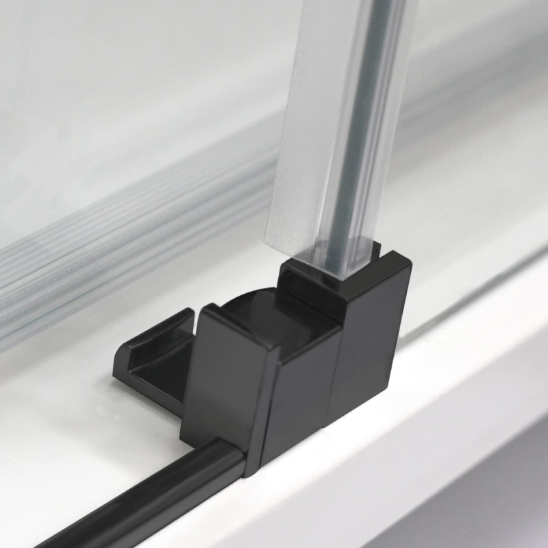 Sprchová zástěna walk-in bez vaničky a barvou profilů v černé barvě, výplň je z čirého skla bez dekoru. S povrchovou úpravou RothETC, která zajišťuje jednodušší čištění skla díky svému voděodpudivému efektu. Po takto ošetřeném sklu stéká voda v pramíncích ihned pryč a bere sebou většinu nečistot i vodního kamene. Posuvný systém otevírání. Určení - pravá orientace.