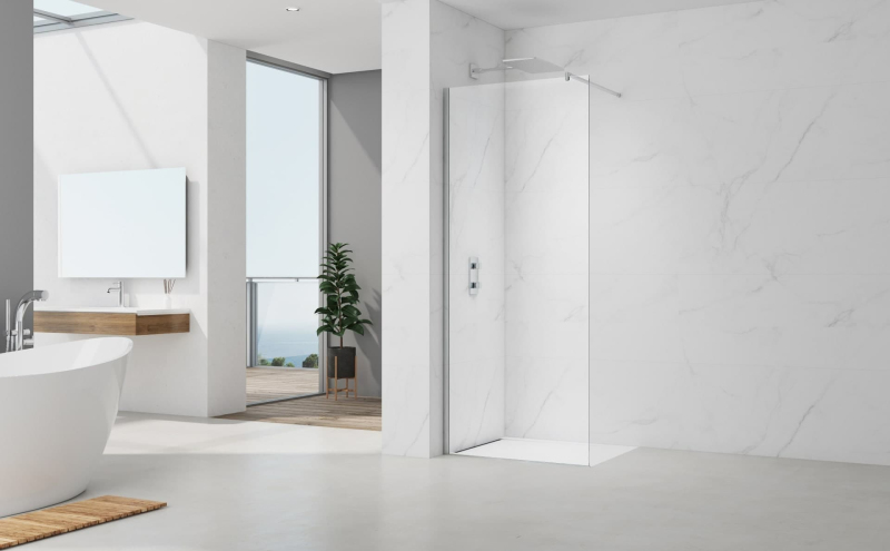 Sprchová zástěna walk-in s profily a zavětrováním v lesklém chromu, výplň je z čirého skla bez dekoru. Produkt je opatřen povrchovou úpravou Easy Clean, která usnadňuje čistění a minimalizuje usazování vodního kamene. Nelze otevřít - pevný systém. Určení - levá i pravá orientace.