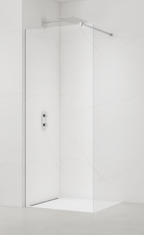 Sprchová zástěna walk-in s profilem pod obklad v lesklém chromu, výplň je z čirého skla bez dekoru. Produkt je opatřen povrchovou úpravou Easy Clean, která usnadňuje čistění a minimalizuje usazování vodního kamene. Nelze otevřít - pevný systém. Určení - levá i pravá orientace.