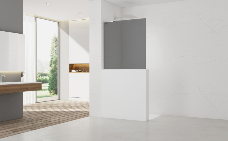 Sprchová zástěna walk-in s profilem a L-zavětrováním v lesklém chromua má dekor kouřového efektu a má dekor kouřového efektu. Produkt je opatřen povrchovou úpravou Easy Clean, která usnadňuje čistění a minimalizuje usazování vodního kamene. Nelze otevřít - pevný systém. Určení - levá orientace.