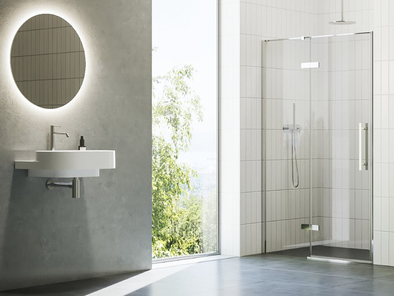 Sprchové dveře včetně nikového profilu v lesklém chromu, výplň je z čirého skla bez dekoru. Produkt je opatřen technologií RAVAK AntiCalc® dodává sklu hydrofobní účinky, to znamená, že povrch skla se stane vodoodpudivým. Pantový systém otevírání. Určení - levá i pravá orientace.