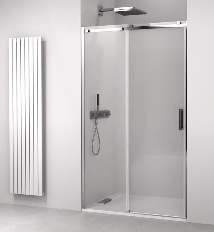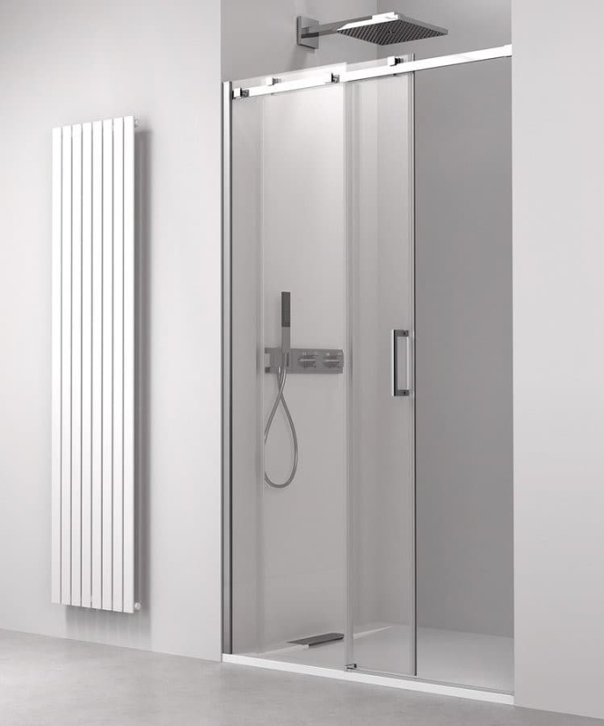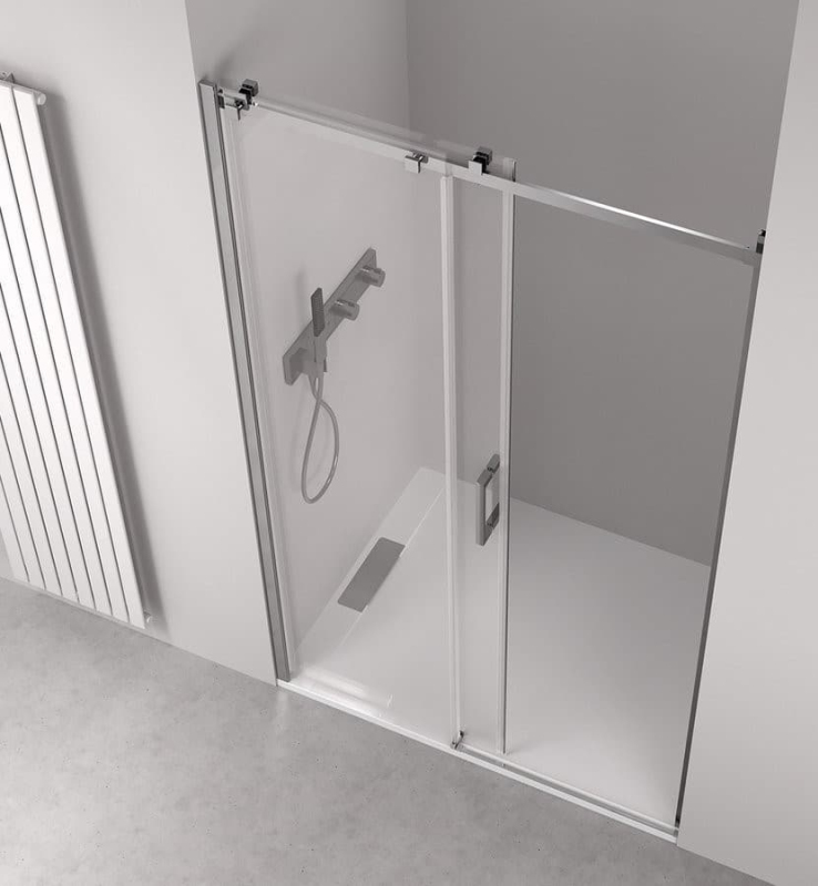 Sprchové dveře bez vaničky a barvou profilů v lesklém chromu, výplň je z čirého skla bez dekoru. Produkt je opatřen povrchovou úpravou ANTIDROP dojde k vyhlazení porézního povrchu skla. Posuvný systém otevírání. Určení - levá i pravá orientace.