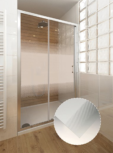 Sprchové dveře bez vaničky a barvou profilů v lesklém chromu, výplň je z neprůhledného skla a s dekorem Intimglass. Produkt je opatřen povrchovou úpravou Rolshield je sklo chráněno před usazováním všech nečistot a jeho údržba je snadnější než kdy dřív. Posuvný systém otevírání. Levá i pravá orientace.