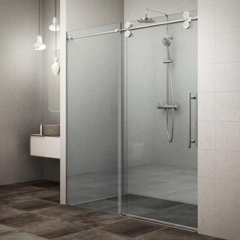 Sprchové dveře bez vaničky a barvou profilů v lesklém chromu, výplň je z čirého skla bez dekoru. Produkt je opatřen povrchovou úpravou Rolshield je sklo chráněno před usazováním všech nečistot a jeho údržba je snadnější než kdy dřív. Posuvný systém otevírání. Levá i pravá orientace.