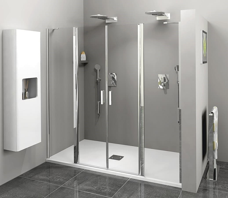 Sprchové dveře bez vaničky a barvou profilů v lesklém chromu, výplň je z čirého skla. Produkt je opatřen povrchovou úpravou ANTIDROP dojde k vyhlazení porézního povrchu skla. Zalamovací systém otevírání. Levá i pravá orientace.