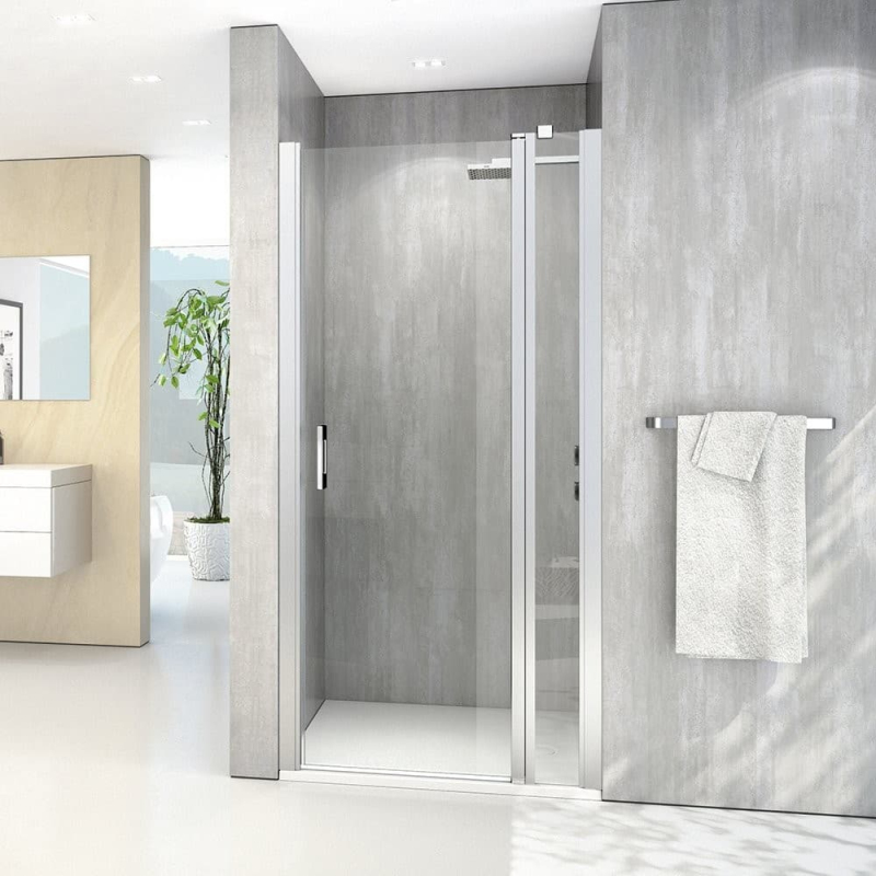 Sprchové dveře bez vaničky a barvou profilů v lesklém chromu, výplň je z čirého skla bez dekoru. S povrchovou úpravou RothETC, která zajišťuje jednodušší čištění skla díky svému voděodpudivému efektu. Po takto ošetřeném sklu stéká voda v pramíncích ihned pryč a bere sebou většinu nečistot i vodního kamene. Otočný systém otevírání. Určení - levá i pravá orientace.