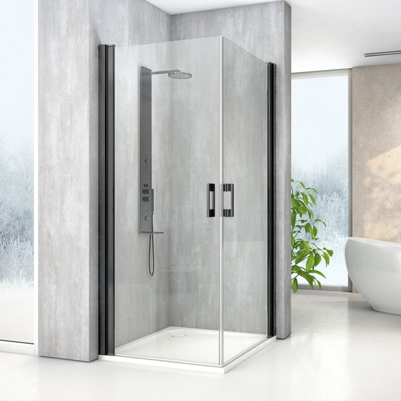POZOR! Jedná se pouze o 1/2 sprchového koutu, jen nutné přikoupit druhou polovinu v požadovaném rozměru. Sprchové dveře bez vaničky a barvou profilů v černé barvě, výplň je z čirého skla bez dekoru. S povrchovou úpravou RothETC, která zajišťuje jednodušší čištění skla díky svému voděodpudivému efektu. Po takto ošetřeném sklu stéká voda v pramíncích ihned pryč a bere sebou většinu nečistot i vodního kamene. Otočný systém otevírání. Určení - levá i pravá orientace.