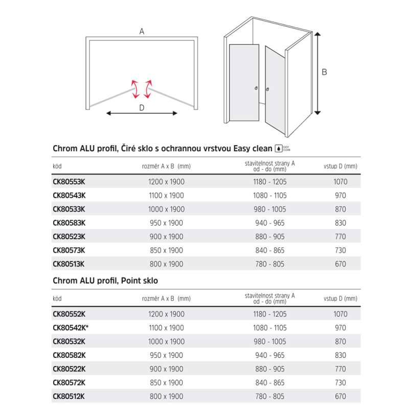Hliníkové profily v barvě chrom, dveře dvoukřídlé, lítací, sklo Point, síla skla 6 mm, rozměr 1000 mm, výška 1900 mm. Zobrazit více
