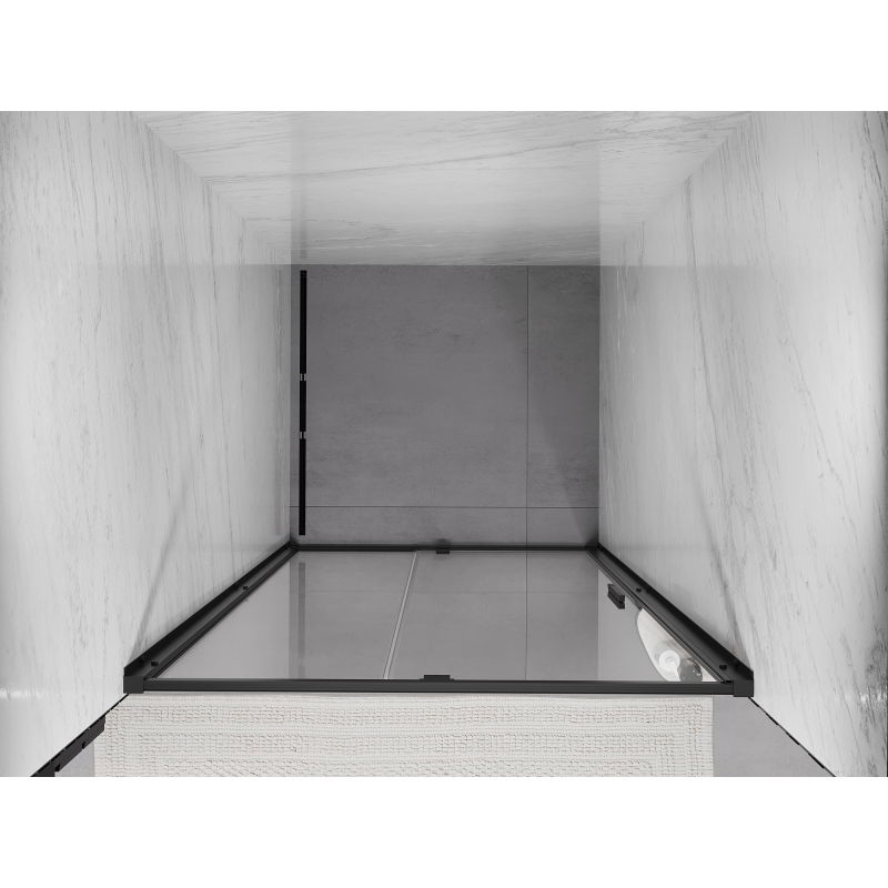 Specifikace produktu: Rozměr: 105x200 cm Montáž: Univerzální Vstup: S panty Barva skla: Průhledná Typ skla: Tvrzené Tloušťka skla: 6 mm Profil: Hliník Povrchová úprava: Černá Povlak pro snadné čištění Vyrovnání nerovností stěny Nastavení šířky Možnost montáže na sprchovou vaničku nebo obklady Kovová rukojeť Sada těsnění pro odvod vody Hliníkový práh pro těsnění dveří