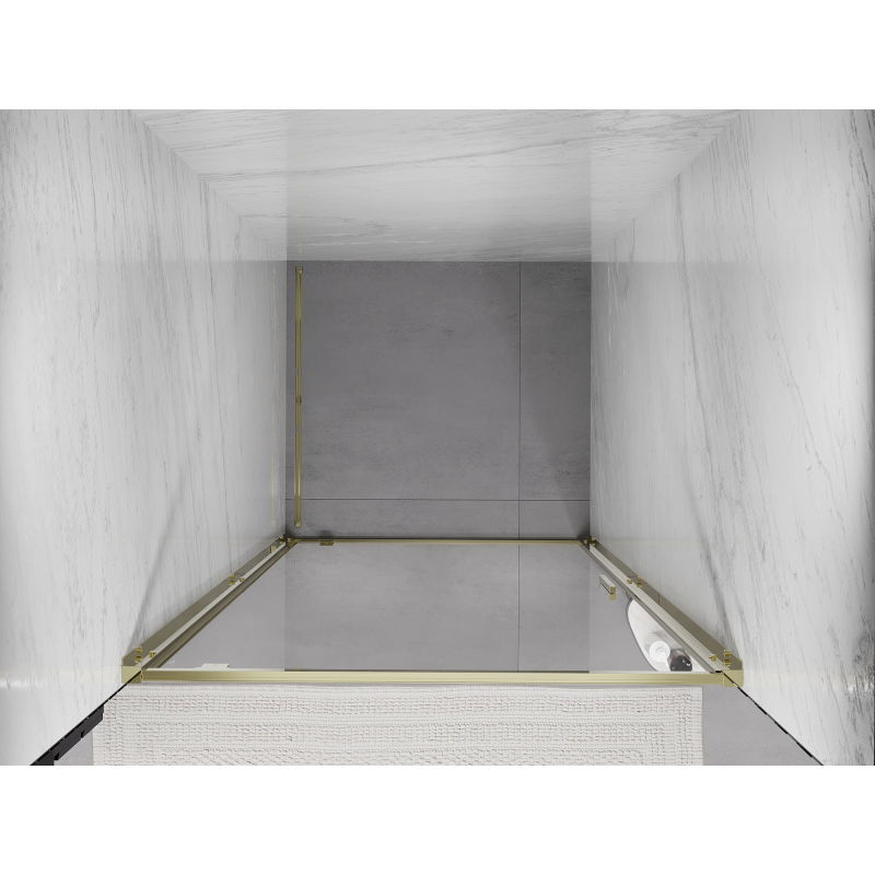 Specifikace produktu: Rozměr: 85x200 cm Montáž: Univerzální Vstup: S panty Barva skla: Průhledná Typ skla: Tvrzené Tloušťka skla: 6 mm Profil: Hliník Povrchová úprava: Zlatý nátěr pro snadné čištění Vyrovnání nerovností stěny Nastavení šířky Možnost montáže na sprchovou vaničku nebo obklady Kovová rukojeť Sada těsnění pro odvod vody Hliníkový práh pro těsnění dveří