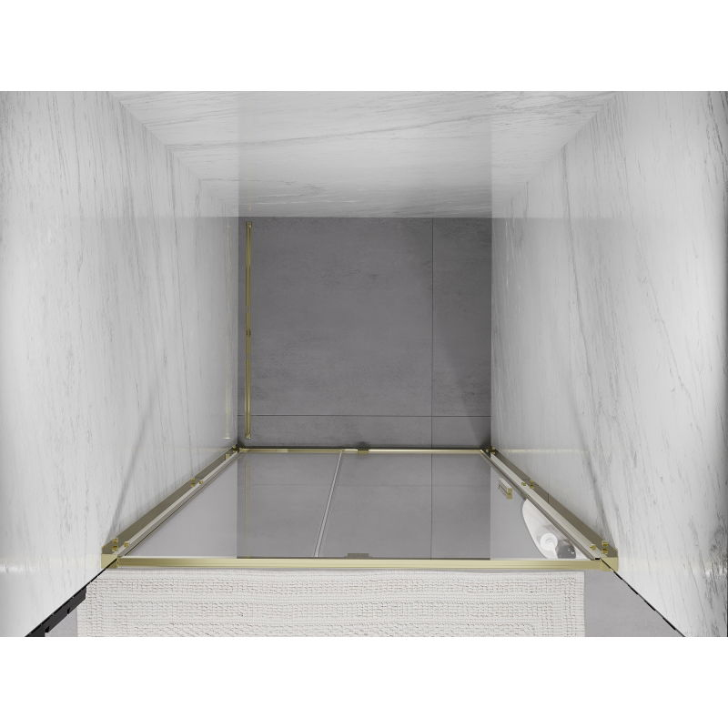 Specifikace produktu: Rozměr: 95x200 cm Montáž: Univerzální Vstup: S panty Barva skla: Průhledná Typ skla: Tvrzené Tloušťka skla: 6 mm Profil: Hliník Povrchová úprava: Zlatý nátěr pro snadné čištění Vyrovnání nerovností stěny Nastavení šířky Možnost montáže na sprchovou vaničku nebo obklady Kovová rukojeť Sada těsnění pro odvod vody Hliníkový práh pro těsnění dveří