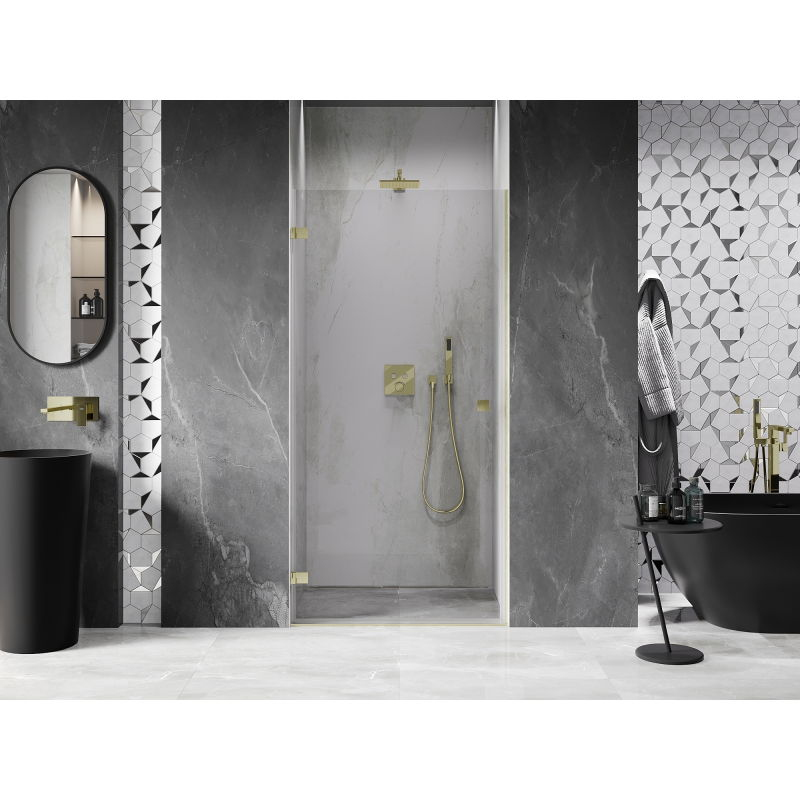 Sprchové dveře Mexen Lunar-B s levými panty 90 cm, průhledné, kartáčované zlato - 832-090-000-55-00-L