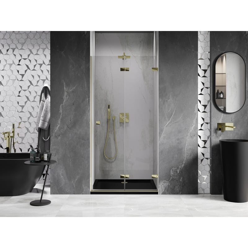 Sprchové dveře Mexen Lunar-F pravé skládací 100 cm, průhledné, zlaté - 836-100-000-50-00-P