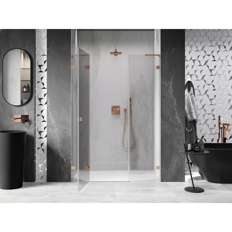 Sprchové dveře Mexen Lunar L s levými panty 130 cm, průhledné, kartáčovaná měď - 834SL-130-050-65-00-L