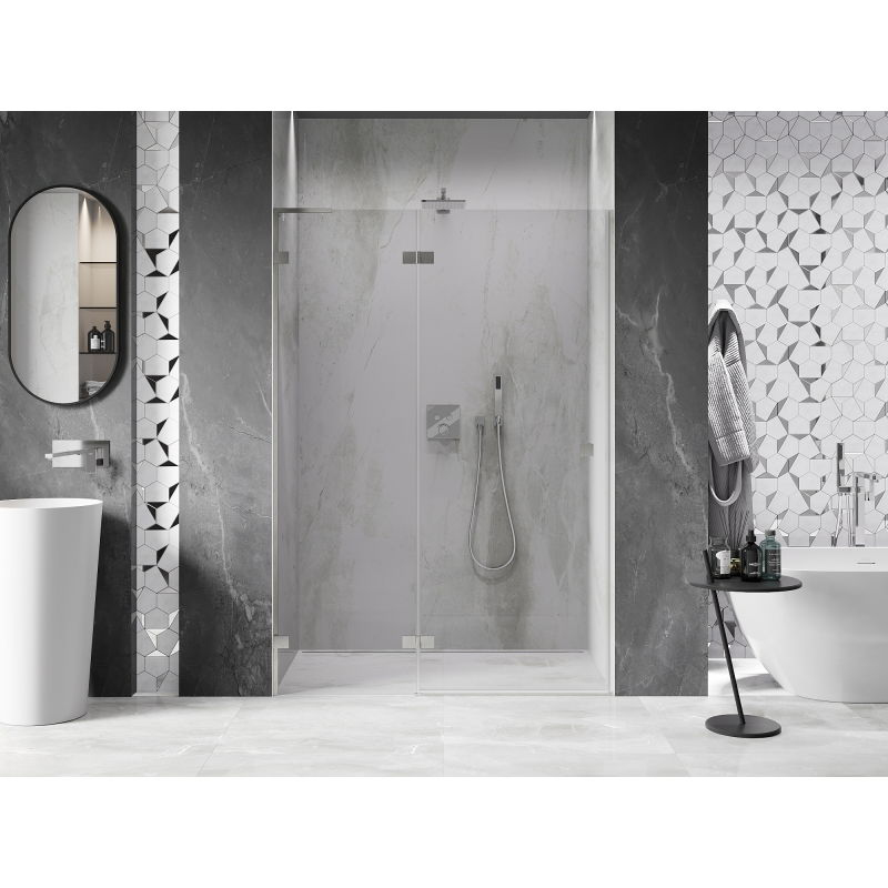 Specifikace produktu: Rozměr: 140x200 cm Strana montáže: Levá Vchod: Otevíravý Barva skla: Průhledná Povrchová úprava: Kartáčovaný nikl Profil: Hliník Stabilizátor ve tvaru L: Nerezová ocel Typ skla: Tvrzené Tloušťka skla: 8 mm Povrchová úprava pro snadné čištění Nastavitelná šířka Dva montážní systémy: - S profilem, který umožňuje vyrovnání nerovností stěny - Bez profilu pro dokonale rovné stěny Možnost montáže na sprchovou vaničku nebo obklady Mechanismus pro zvedání a spouštění dveří Mosazné svorky a panty v jedné rovině se sklem Magnetický proužek a elastomerové těsnění pro odvod vody Hliníkový práh těsnění dveří