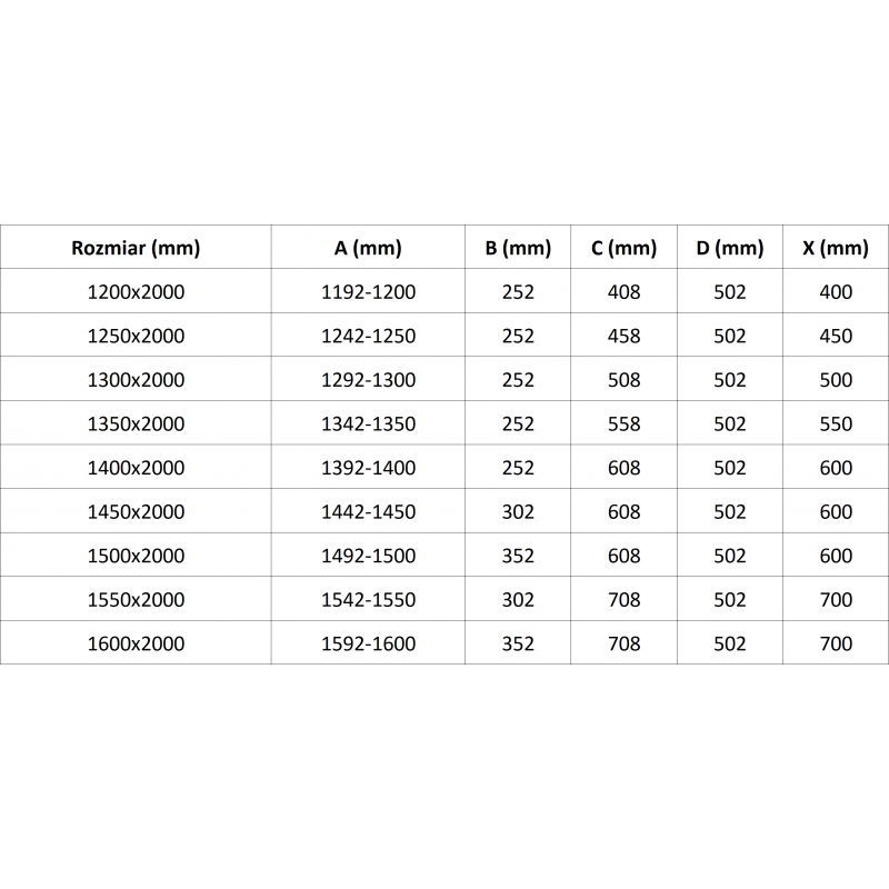 Specifikace produktu: Rozměr: 155x200 cm Strana montáže: Levá Vchod: Otevíravý Barva skla: Průhledná Povrchová úprava: Kartáčovaný nikl Profil: Hliník Stabilizátor ve tvaru L: Nerezová ocel Typ skla: Tvrzené Tloušťka skla: 8 mm Povrchová úprava pro snadné čištění Nastavitelná šířka Dva montážní systémy: - S profilem, který umožňuje vyrovnání nerovností stěny - Bez profilu pro dokonale rovné stěny Možnost montáže na sprchovou vaničku nebo obklady Mechanismus pro zvedání a spouštění dveří Mosazné svorky a panty v jedné rovině se sklem Magnetický proužek a elastomerové těsnění pro odtok vody Hliníkový práh těsnění dveří