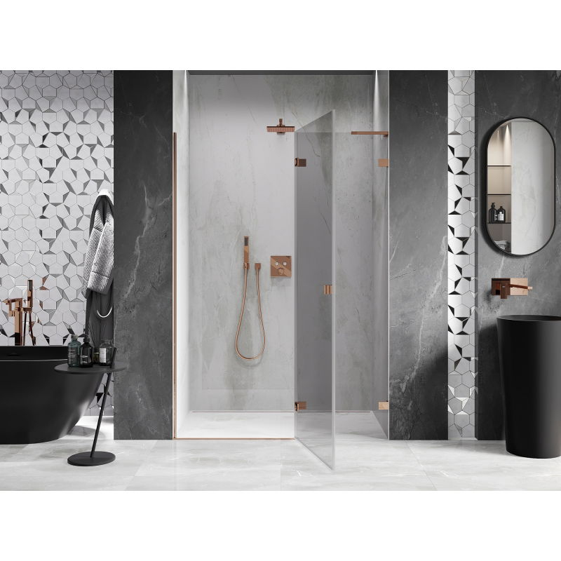 Sprchové dveře Mexen Lunar L s pravými panty 135 cm, průhledné, růžové zlato - 834L-135-000-60-00-P