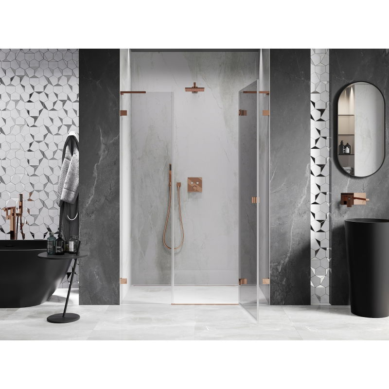 Sprchové dveře Mexen Lunar L s pravými panty 135 cm, průhledné, růžové zlato - 834SL-135-050-60-00-P