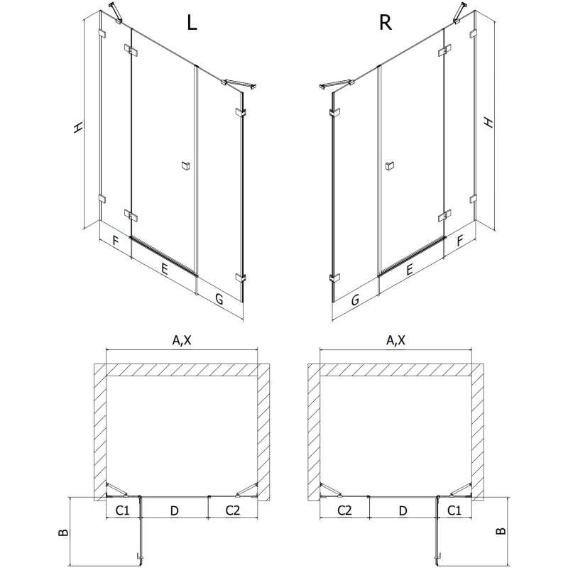Specifikace produktu: Rozměr: 135x200 cm Strana montáže: Levá Vchod: Otevíravý Barva skla: Průhledná Povrchová úprava: Zlatá Profil: Hliník Konzola: Nerezová ocel Typ skla: Tvrzené Tloušťka skla: 8 mm Povrchová úprava pro snadné čištění Nastavitelná šířka Dva montážní systémy: - S profilem, který umožňuje vyrovnání nerovností stěn - Bez profilu pro dokonale rovné stěny Možnost montáže na sprchovou vaničku nebo obklady Mechanismus pro zvedání a spouštění dveří Mosazné svorky a panty v jedné rovině se skleněnou tabulí Magnetický proužek a elastomerové těsnění pro odvod vody Hliníkový práh těsnění dveří