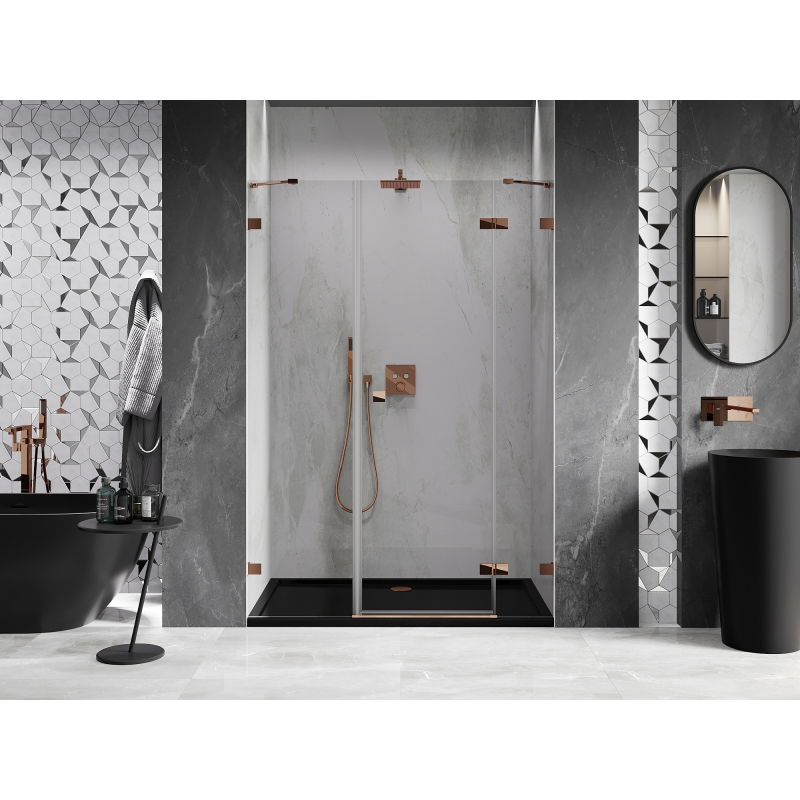 Sprchové dveře Mexen Lunar s pravými panty 145 cm, průhledné, růžové zlato - 834S-145-050-60-00-P