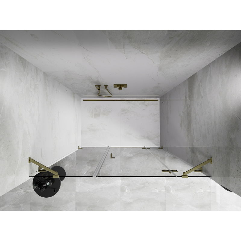 Specifikace produktu: Rozměr: 155x200 cm Strana montáže: Pravá Vchod: Otevíravý Barva skla: Průhledná Povrchová úprava: Kartáčované zlato Profil: Hliník Nosná konstrukce: Nerezová ocel Typ skla: Tvrzené Tloušťka skla: 8 mm Povrchová úprava pro snadné čištění Nastavitelná šířka Dva montážní systémy: - S profilem, který umožňuje vyrovnání nerovností stěn - Bez profilu pro dokonale rovné stěny Možnost montáže na sprchovou vaničku nebo obklady Mechanismus pro zvedání a spouštění dveří Mosazné svorky a panty v jedné rovině se sklem Magnetický proužek a elastomerové těsnění pro odvod vody Hliníkový práh pro těsnění dveří