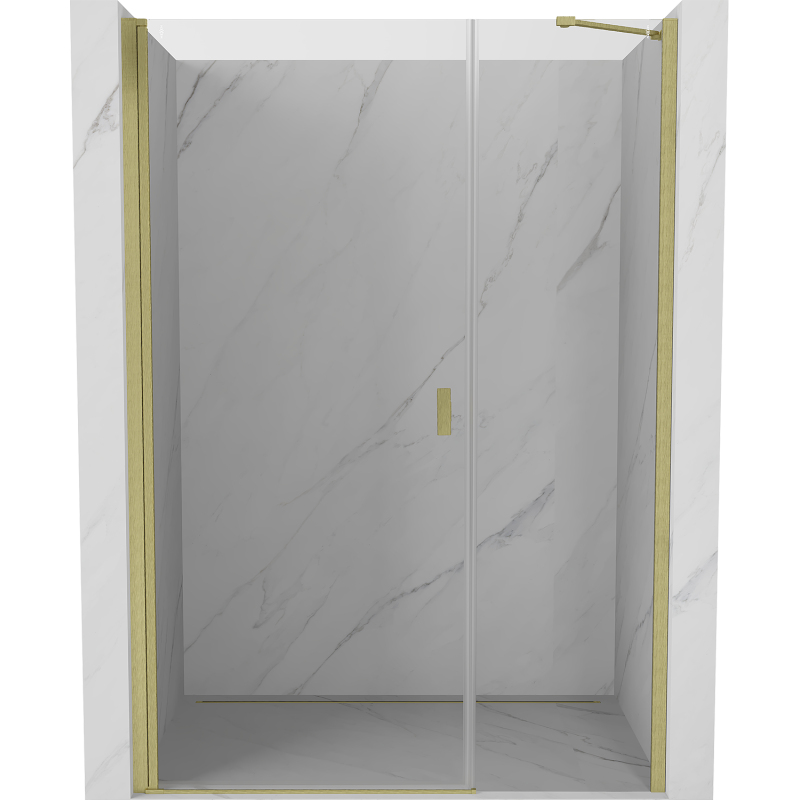 Specifikace produktu: Rozměr: 95x200 cm Strana montáže: Univerzální Vchod: Výklopný Barva skla: Průhledná Povrchová úprava: Kartáčované zlato Profil: Hliník Konzola: Nerezová ocel Typ skla: Tvrzené Tloušťka skla: 6 mm Povrchová úprava pro snadné čištění Nastavitelná šířka Možnost instalace na sprchovou vaničku nebo dlaždice Mechanismus zvedání a spouštění dveří Magnetický proužek a elastomerové těsnění pro odtok vody Hliníkový práh těsnění dveří