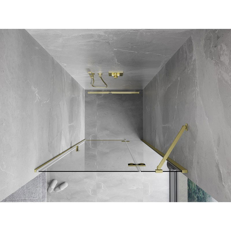 Specifikace produktu: Rozměr: 115x200 cm Strana montáže: Pravá Vchod: Otevíravý Barva skla: Průhledná Povrchová úprava: Kartáčované zlato Profil: Hliník Konzola: Nerezová ocel Typ skla: Tvrzené Tloušťka skla: 6 mm Povrchová úprava pro snadné čištění Nastavitelná šířka Možnost instalace na sprchovou vaničku nebo dlaždice Mechanismus pro zvedání a spouštění dveří Mosazné panty v jedné rovině se sklem Magnetický proužek a elastomerové těsnění pro odtok vody Hliníkový práh těsnění dveří