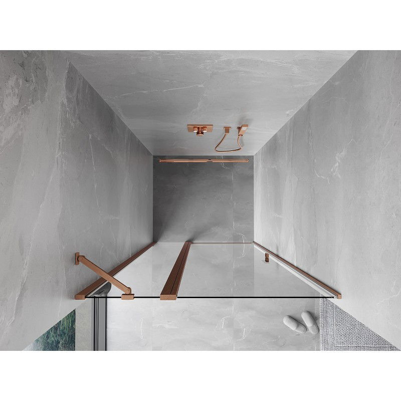 Sprchové dveře Mexen Mist s otočnými dveřmi 70 cm, průhledné, kartáčovaná měď - 8A4-070-000-65-00