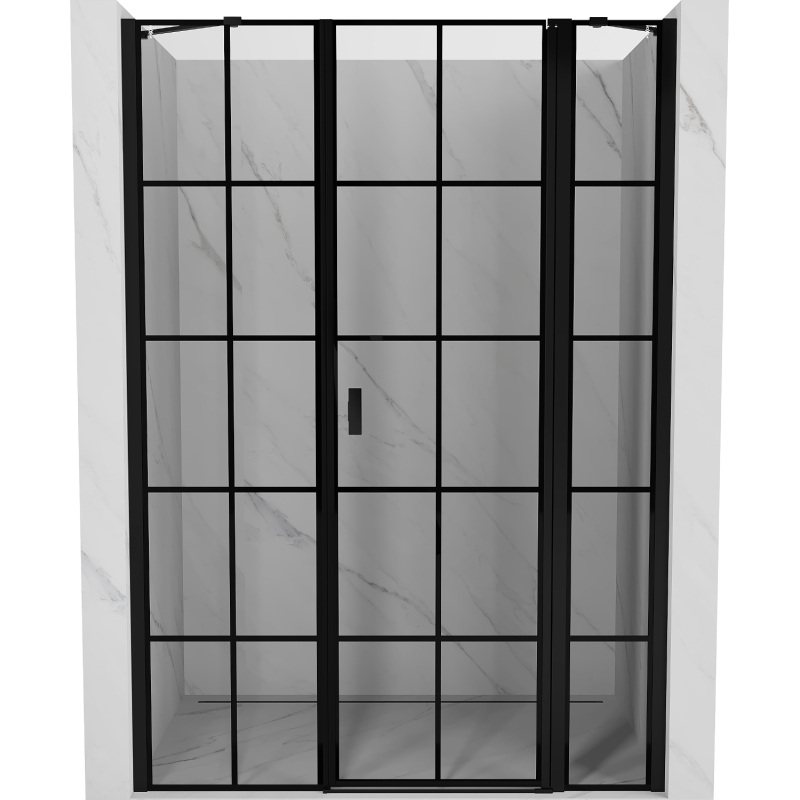Specifikace produktu: Rozměr: 145x200 cm Strana montáže: Pravá Vchod: Výklopný Barva skla: Černá mřížka Povrchová úprava: Černá Profil: Hliník Konzola: Nerezová ocel Typ skla: Tvrzené Tloušťka skla: 6 mm Povrchová úprava pro snadné čištění Nastavitelná šířka Možnost instalace na sprchovou vaničku nebo dlaždice Mechanismus zvedání a spouštění dveří Magnetický proužek a elastomerové těsnění pro odtok vody Hliníkový práh těsnění dveří