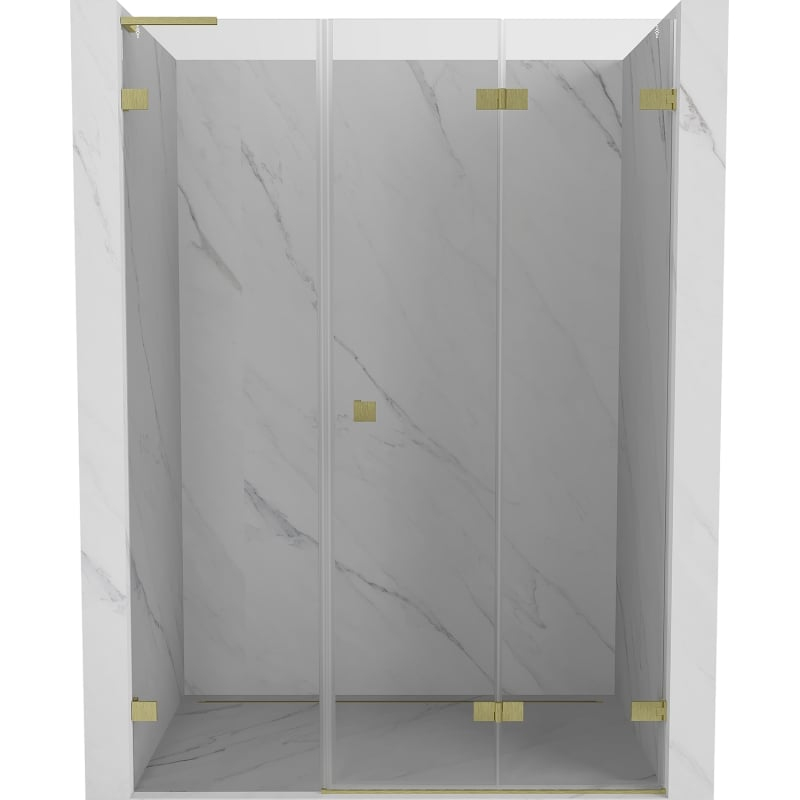 Sprchové skládací dveře Mexen Lunar-F L pravé 120 cm, průhledné, kartáčované zlato - 836SL-120-050-55-00-P