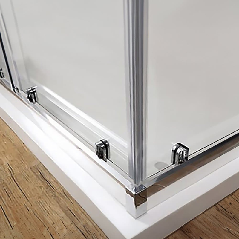 Sprchový kout bez vaničky a barvou profilů v lesklém chromu, výplň je z neprůhledného skla. Posuvný systém otevírání. Určení - levá i pravá orientace.