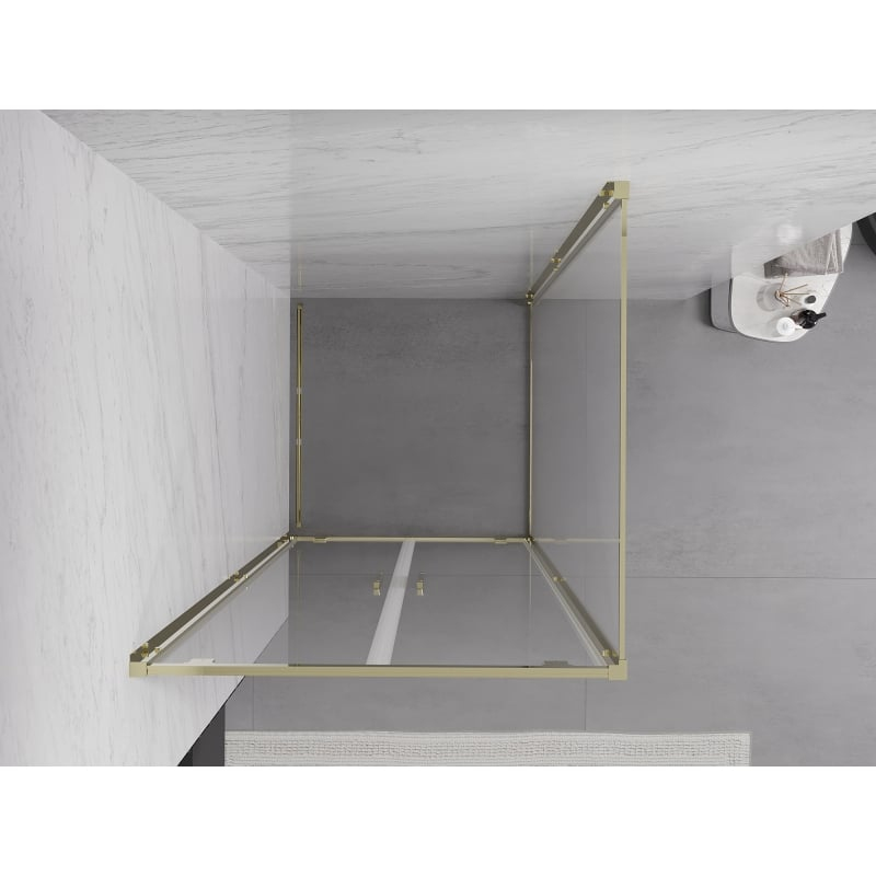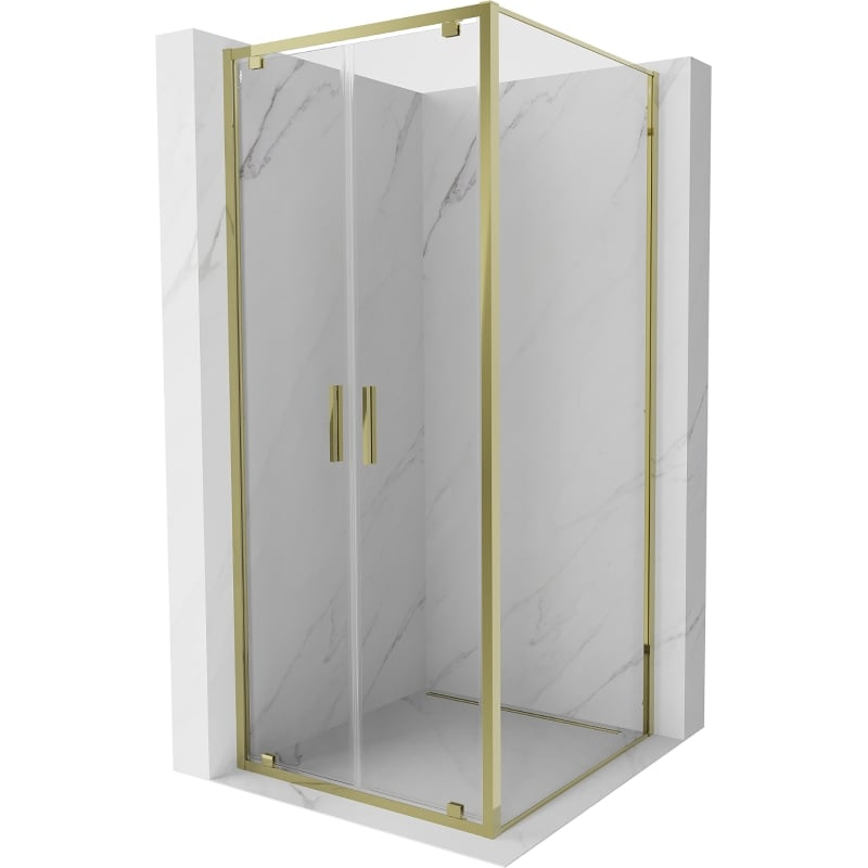 Specifikace produktu: Rozměr: 90x90 cm (dveře 90 cm, stěna 90 cm) Výška: 200 cm Montáž: Univerzální Vstup: Dveře s otočnými křídly Barva skla: Průhledná Povrchová úprava: Zlatá Typ skla: Tvrzené Tloušťka skla: 6 mm Profil: Hliník Povlak pro snadné čištění Vyrovnání nerovností stěny Nastavení šířky Možnost montáže na sprchovou vaničku nebo obklady Kovová rukojeť Sada těsnění pro odvod vody Hliníkový práh pro těsnění dveří