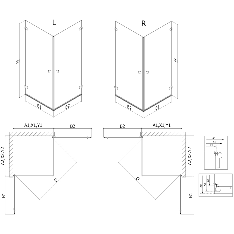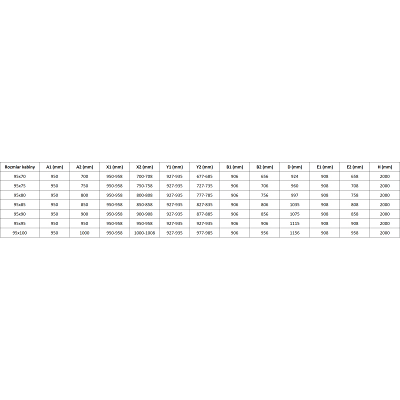Specifikace produktu: Rozměr: 95x80 cm Výška: 200 cm Strana montáže: Univerzální Vchod: Dveře s výklopnými křídly Barva skla: Průhledná Povrchová úprava: Chrom Profil: Hliník Typ skla: Tvrzené Tloušťka skla: 6 mm Povrchová úprava pro snadné čištění Nastavitelná šířka Dva montážní systémy: - S profilem, který umožňuje vyrovnání nerovností stěn - Bez profilu pro dokonale rovné stěny Možnost montáže na sprchovou vaničku nebo obklady Mechanismus pro zvedání a spouštění dveří Mosazné svorky v jedné rovině se skleněnou tabulí Magnetický proužek a elastomerové těsnění pro odvod vody Hliníkový práh těsnění dveří