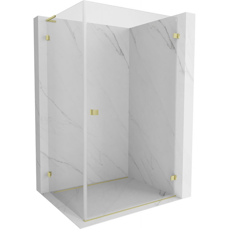 Specifikace produktu: Rozměr: 95x90 cm (pravé dveře 95 cm, stěna 90 cm) Výška: 200 cm Strana montáže: Pravá Vchod: Dveře s výklopnými křídly Barva skla: Průhledná Povrchová úprava: Kartáčované zlato Profil: Hliník Úhlový stabilizátor L: Nerezová ocel Typ skla: Tvrzené Tloušťka skla: dveře 6 mm, stěna 8 mm Povlak pro snadné čištění Možnost nastavení šířky Dva montážní systémy: - S profilem, který umožňuje vyrovnání nerovností stěn - Bez profilu v případě dokonale rovných stěn Možnost montáže na sprchovou vaničku nebo obklady Mechanismus pro zvedání a spouštění dveří Mosazné svorky v jedné rovině se skleněnou tabulí Magnetický proužek a elastomerové těsnění pro odvod vody Hliníkový práh těsnění dveří