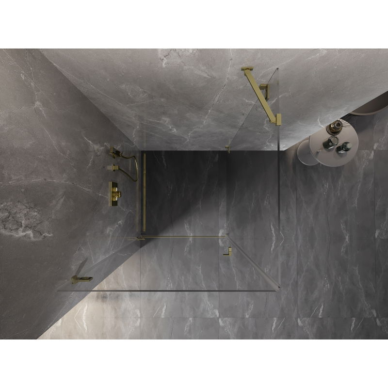 Specifikace produktu: Rozměr: 100x100 cm (levé dveře 100 cm, stěna 100 cm) Výška: 200 cm Strana montáže: Levá Vchod: Dveře s otočnými panty Barva skla: Průhledná Povrchová úprava: Kartáčované zlato Profil: Hliník Typ skla: Tvrzené Tloušťka skla: dveře 6 mm, stěna 8 mm Povlak pro snadné čištění Nastavitelná šířka Dva montážní systémy: - S profilem, který umožňuje vyrovnání nerovností stěn - Bez profilu pro dokonale rovné stěny Možnost montáže na sprchovou vaničku nebo obklady Mechanismus pro zvedání a spouštění dveří Mosazné svorky v jedné rovině se skleněnou tabulí Magnetický proužek a elastomerové těsnění pro odvod vody Hliníkový práh těsnění dveří