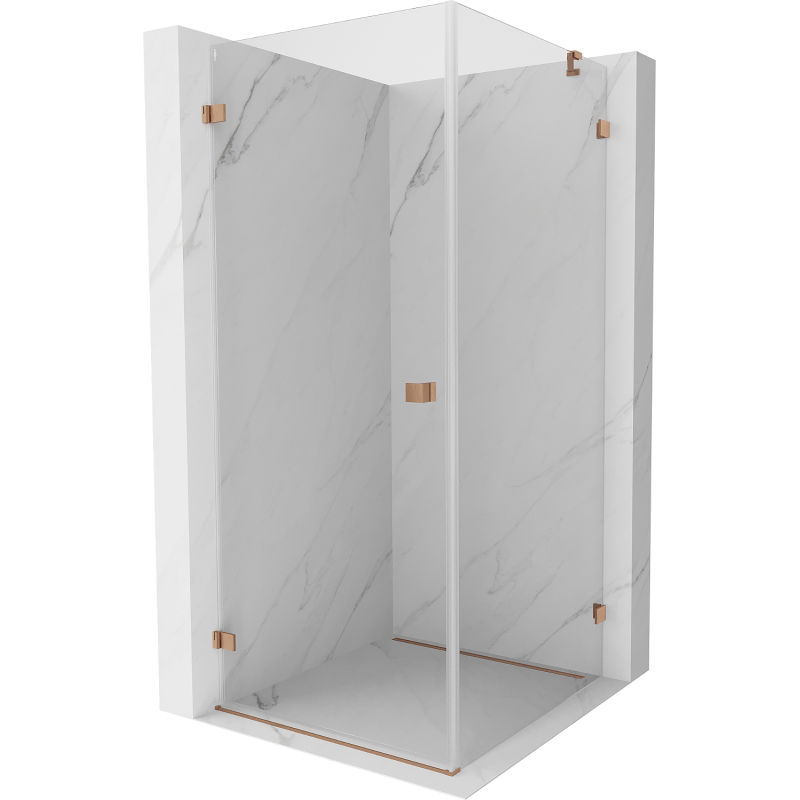 Sprchový kout Mexen Lunar-B s levým výklopným uchycením 80 x 80 cm, průhledný, kartáčovaná měď - 832-080-080-65-00-L