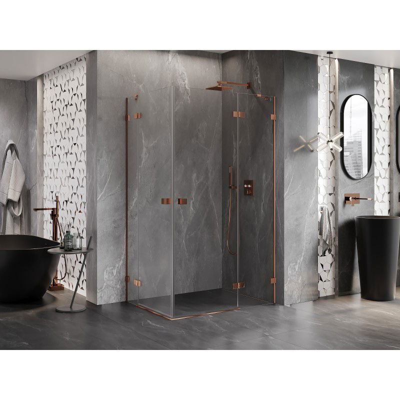 Sprchový kout Mexen Lunar Duo s pravými panty 110 x 75 cm, průhledný, růžové zlato - 834-110P-075L-60-00