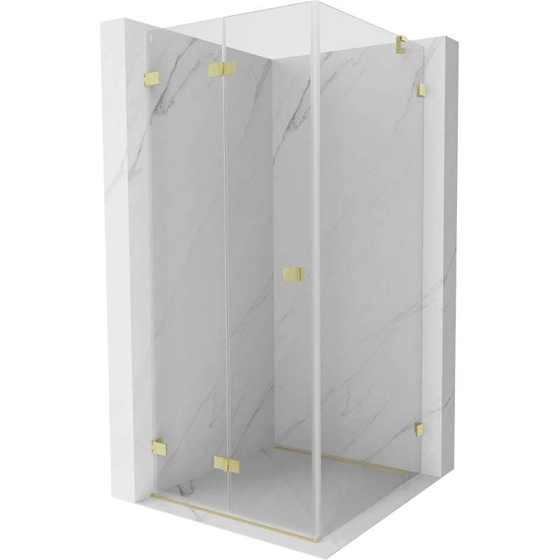 Sprchový kout Mexen Lunar-F skládací levý 90 x 90 cm, průhledný, kartáčované zlato - 836-090-090-55-00-L