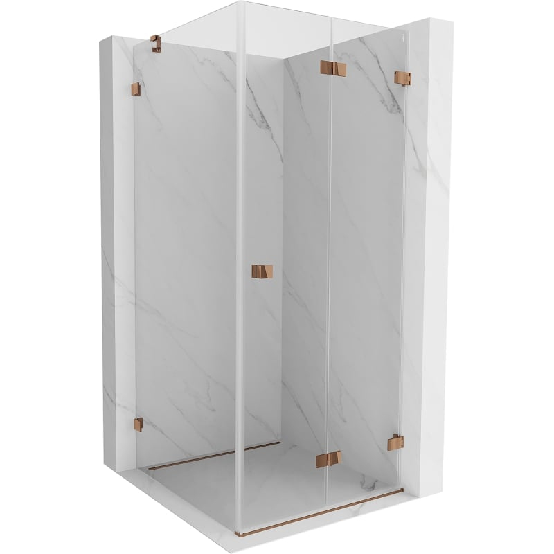 Sprchový kout Mexen Lunar-F skládací pravý 80 x 80 cm, průhledný, růžové zlato - 836-080-080-60-00-P