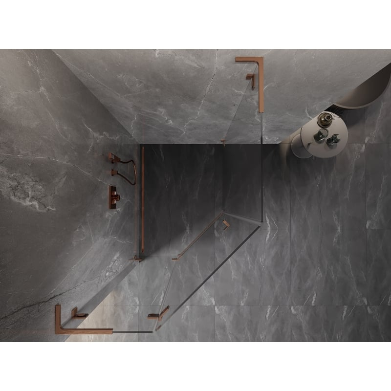 Sprchový kout Mexen Lunar L pětiúhelníkový, levý, výklopný, 80 x 100 cm, průhledný, kartáčovaná měď - 831L-080L-100P-65-00-L