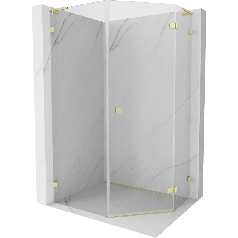 Sprchový kout Mexen Lunar L pětiúhelníkový, pravý, výklopný, 80 x 90 cm, průhledný, kartáčované zlato - 831L-080P-090L-55-00-P