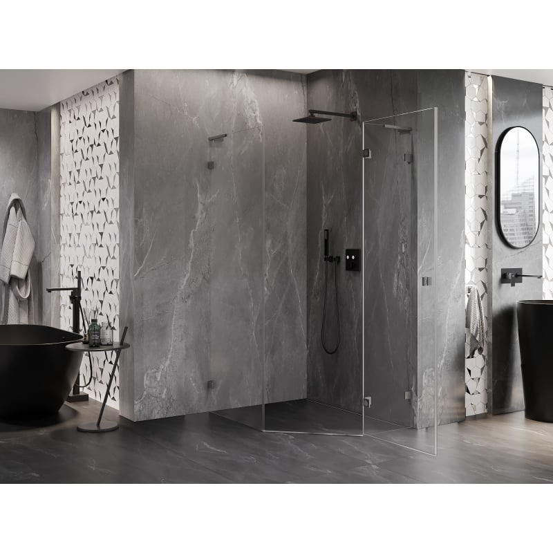 Specifikace produktu: Rozměr: 90x100 cm (pravé dveře 90 cm, stěna 100 cm) Výška: 200 cm Strana montáže: Pravá Vchod: Dveře s otočnými panty Barva skla: Průhledná Povrchová úprava: Kartáčovaná šedá Profil: Hliník Stabilizátor ve tvaru L: Nerezová ocel Typ skla: Tvrzené Tloušťka skla: 8 mm Povrchová úprava pro snadné čištění Možnost nastavení šířky Dva montážní systémy: - S profilem, který umožňuje vyrovnání nerovností stěny - Bez profilu pro dokonale rovné stěny Možnost montáže na sprchovou vaničku nebo obklady Mechanismus pro zvedání a spouštění dveří Mosazné svorky a panty v jedné rovině se skleněnou tabulí Magnetický proužek a elastomerové těsnění pro odvod vody Hliníkový práh těsnění dveří