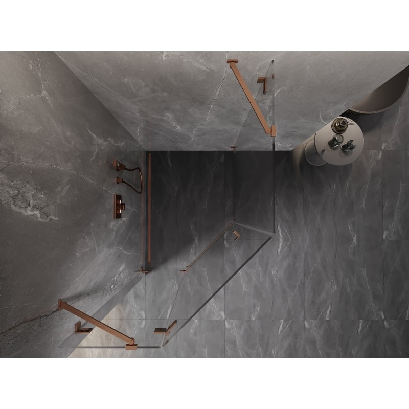 Sprchový kout Mexen Lunar pětiúhelníkový, levý, výklopný, 80 x 100 cm, průhledný, kartáčovaná měď - 831-080L-100P-65-00-L