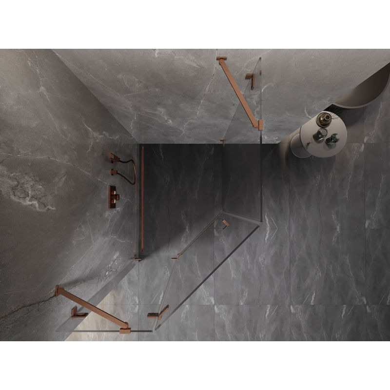 Sprchový kout Mexen Lunar pětiúhelníkový, levý, výklopný, 80 x 90 cm, průhledný, kartáčovaná měď - 831-080L-090P-65-00-L