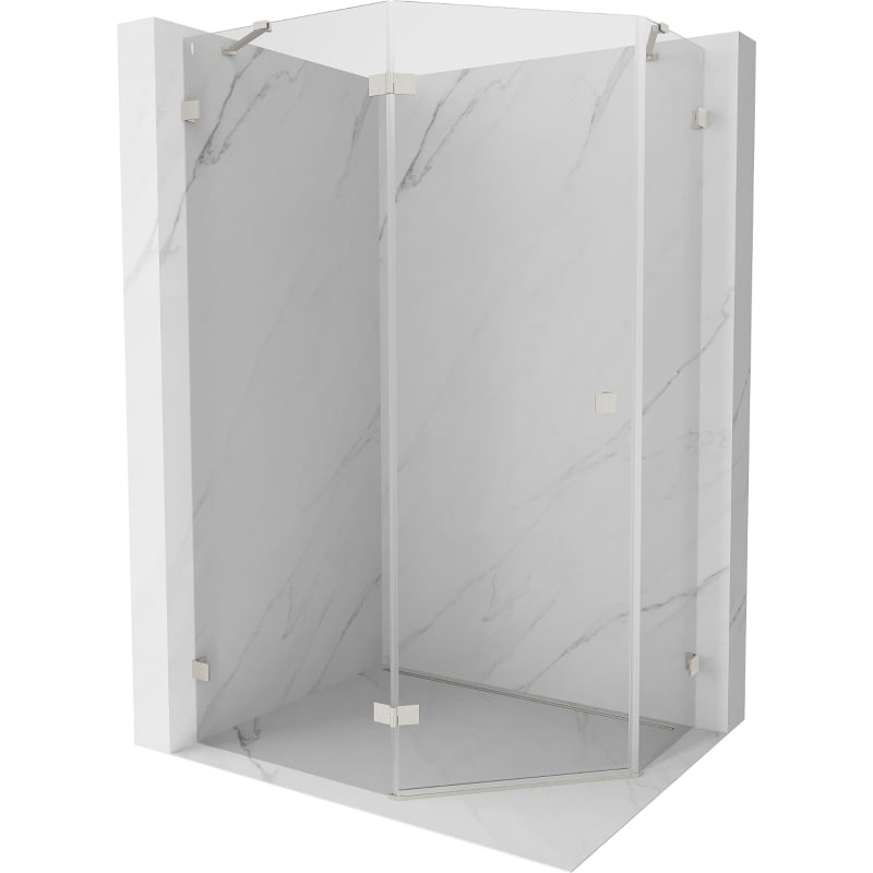 Sprchový kout Mexen Lunar pětiúhelníkový, levý, výklopný, 90 x 80 cm, průhledný, kartáčovaný nikl - 831-090L-080P-97-00-L