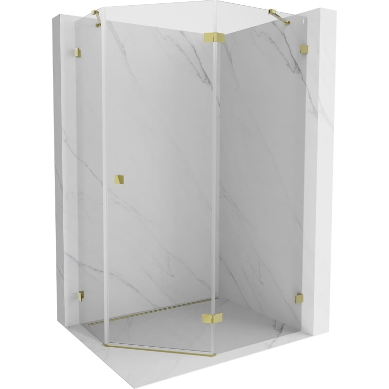 Sprchový kout Mexen Lunar pětiúhelníkový, pravý, výklopný, 100 x 80 cm, průhledný, zlatý - 831-100P-080L-50-00-P