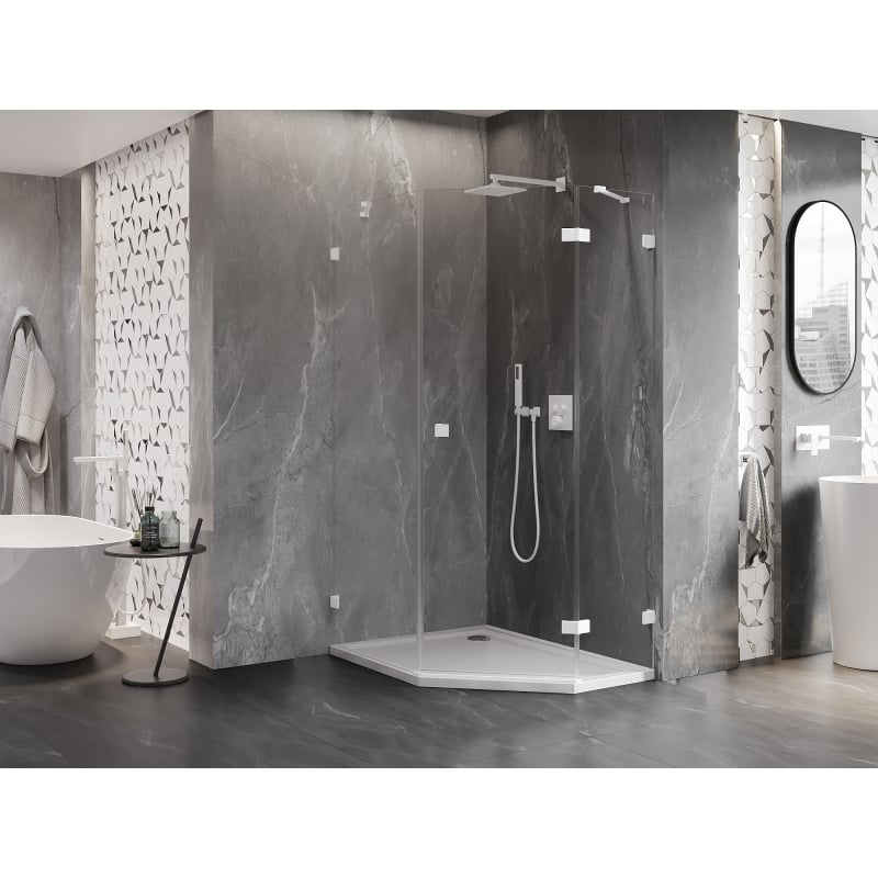 Sprchový kout Mexen Lunar pětiúhelníkový, pravý, výklopný, 90 x 100 cm, průhledný, bílý - 831-090P-100L-20-00-P