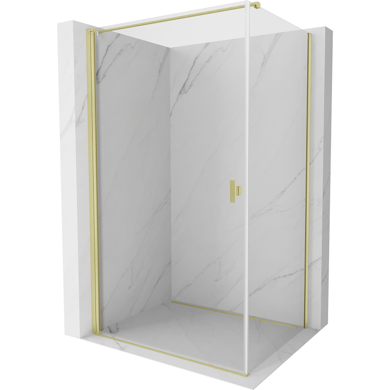 Specifikace produktu: Rozměr: 85x120 cm (dveře 85 cm, stěna 120 cm) Výška: 200 cm Strana montáže: Univerzální Vchod: Dveře s otočnými panty Barva skla: Průhledná Povrchová úprava: Kartáčované zlato Profil: Hliník Konzola: Nerezová ocel Max. délka konzoly: 150 cm Konzolu lze řezat Typ skla: Tvrzené Tloušťka skla: 6 mm Povrchová úprava pro snadné čištění Nastavitelná šířka Možnost montáže na sprchovou vaničku nebo dlaždice Mechanismus zvedání a spouštění dveří Magnetický proužek a elastomerové těsnění pro odtok vody Hliníkový práh těsnění dveří