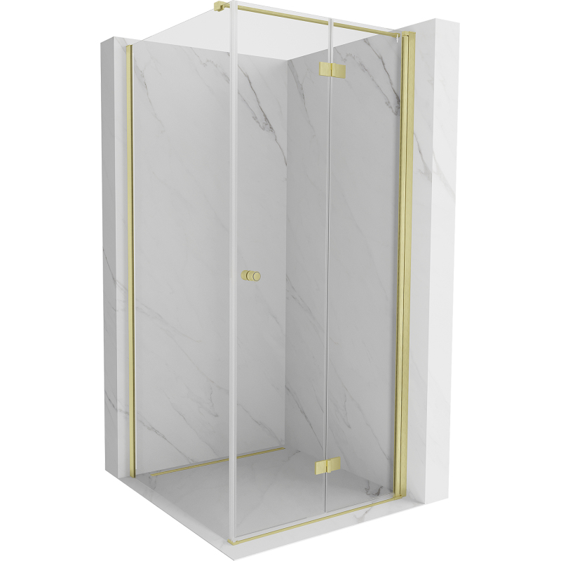 Specifikace produktu: Rozměr: 95x95 cm (pravé dveře 95 cm, stěna 95 cm) Výška: 200 cm Strana montáže: Pravá Vchod: Skládací dveře Barva skla: Průhledná Povrchová úprava: Kartáčované zlato Profil: Hliník Konzola: Nerezová ocel Max. délka konzoly: 150 cm Konzolu lze řezat Typ skla: Tvrzené Tloušťka skla: 6 mm Povrchová úprava pro snadné čištění Nastavitelná šířka Možnost montáže na sprchovou vaničku nebo dlaždice Mechanismus pro zvedání a spouštění dveří Mosazné panty v jedné rovině se sklem Magnetický proužek a elastomerové těsnění pro odvod vody Hliníkový práh těsnění dveří