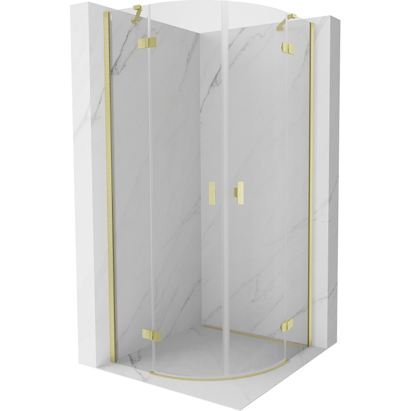 Sprchový kout Mexen Mist půlkruhový výklopný 80 x 80 cm, průhledný, kartáčované zlato - 8A33-080-080-55-00